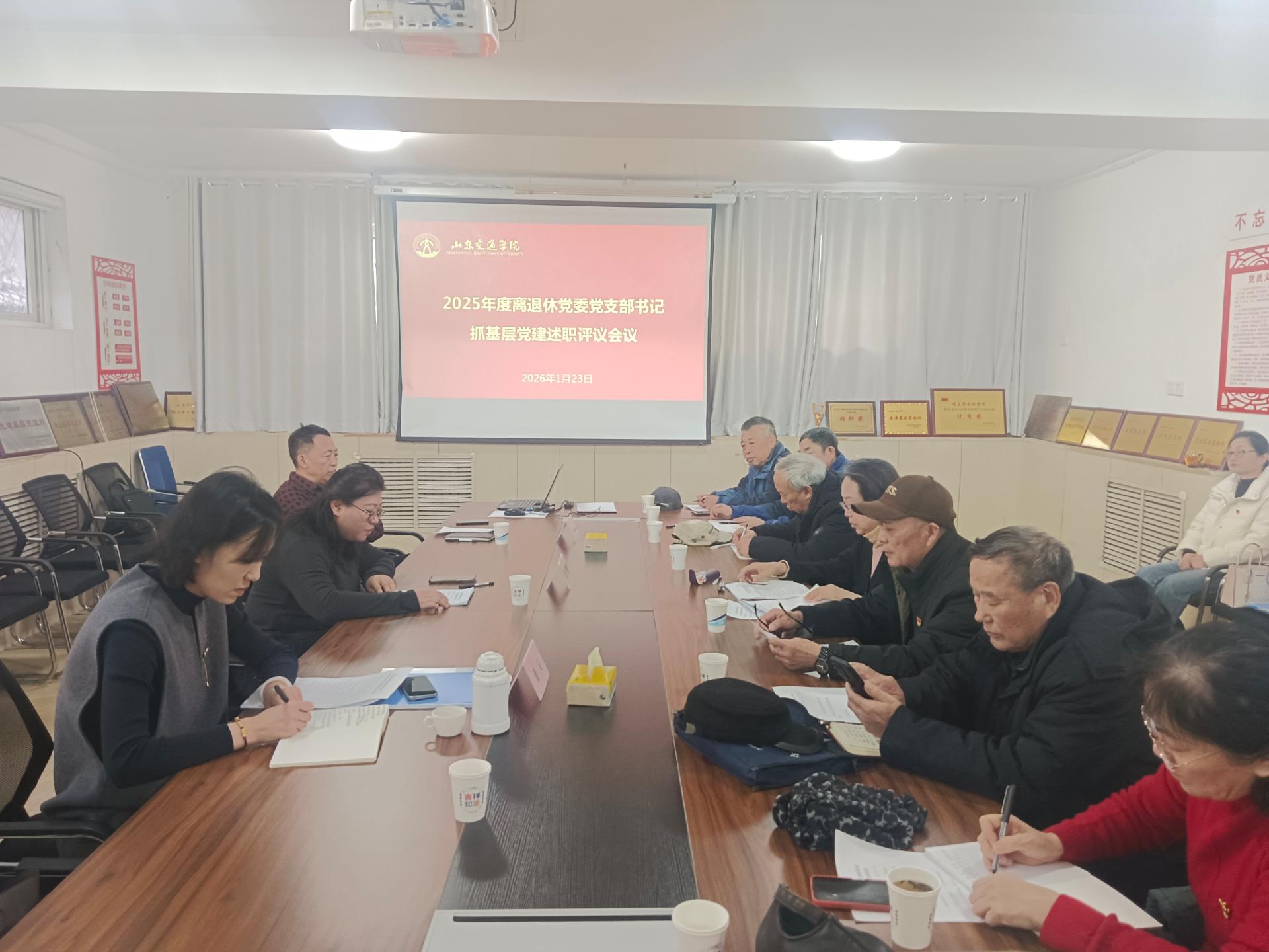 2026年1月23日,离退休党委在无影山校区老干部活动中心党员会议室召开2025年度党支部书记抓基层党建工作述职与全面从严治党述责述廉评议会议,全面检视各支部党建工作成效。学校资产管理处董瑶列席指导,离退休党委班子成员、各党支部书记、离退休工作处全体工作人员参加会议。会议由离退休党委书记、离退休工作处处长单珊主持。